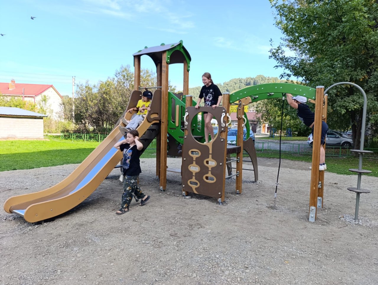 В селе Майма открыли новую детскую площадку на улице Мира, 10.